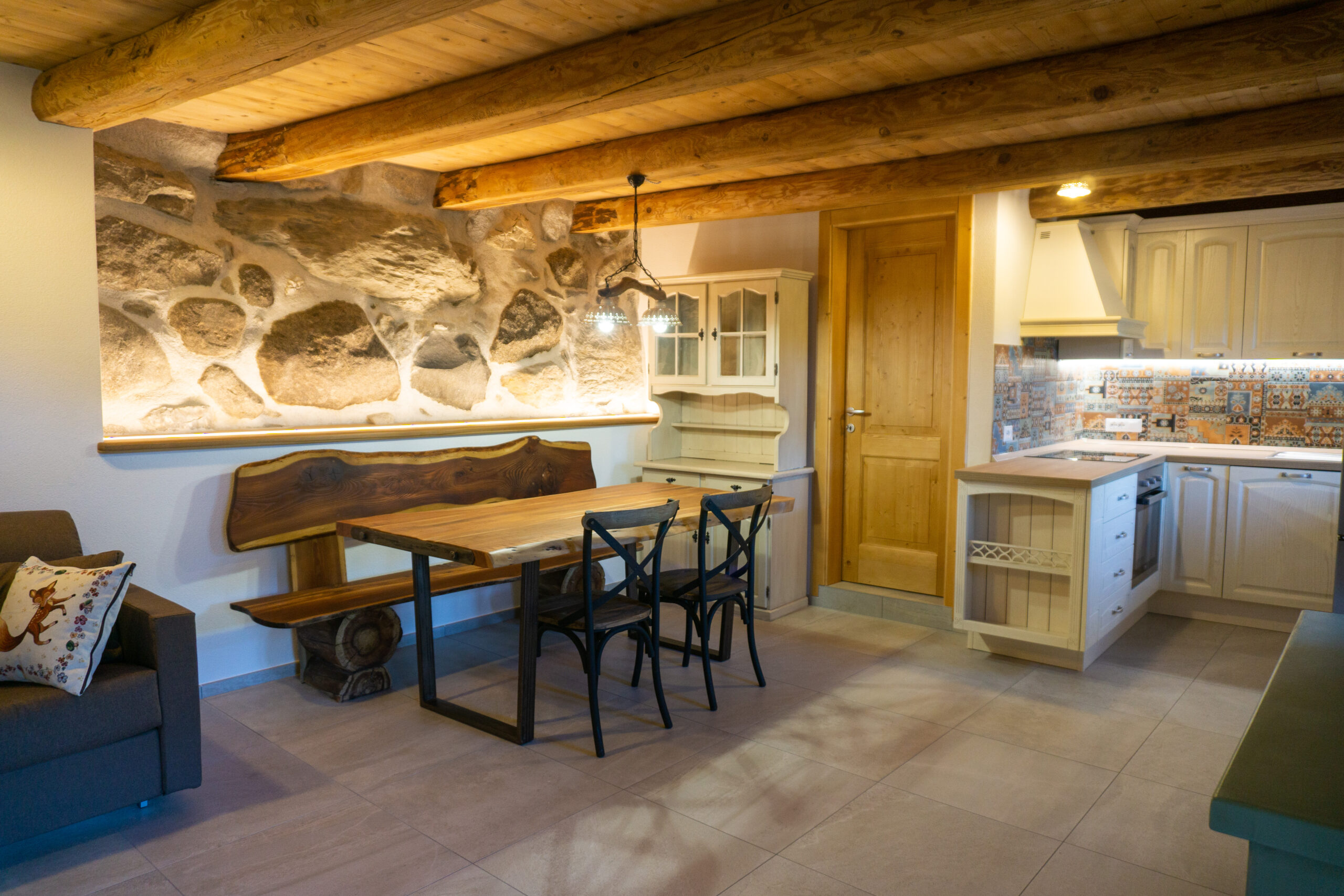 È stato completatmento ristrutturato cercando di unire l’aspetto tipico delle case alto tesine con un arredamento ricercato e all’insegna della qualità dei materiali.